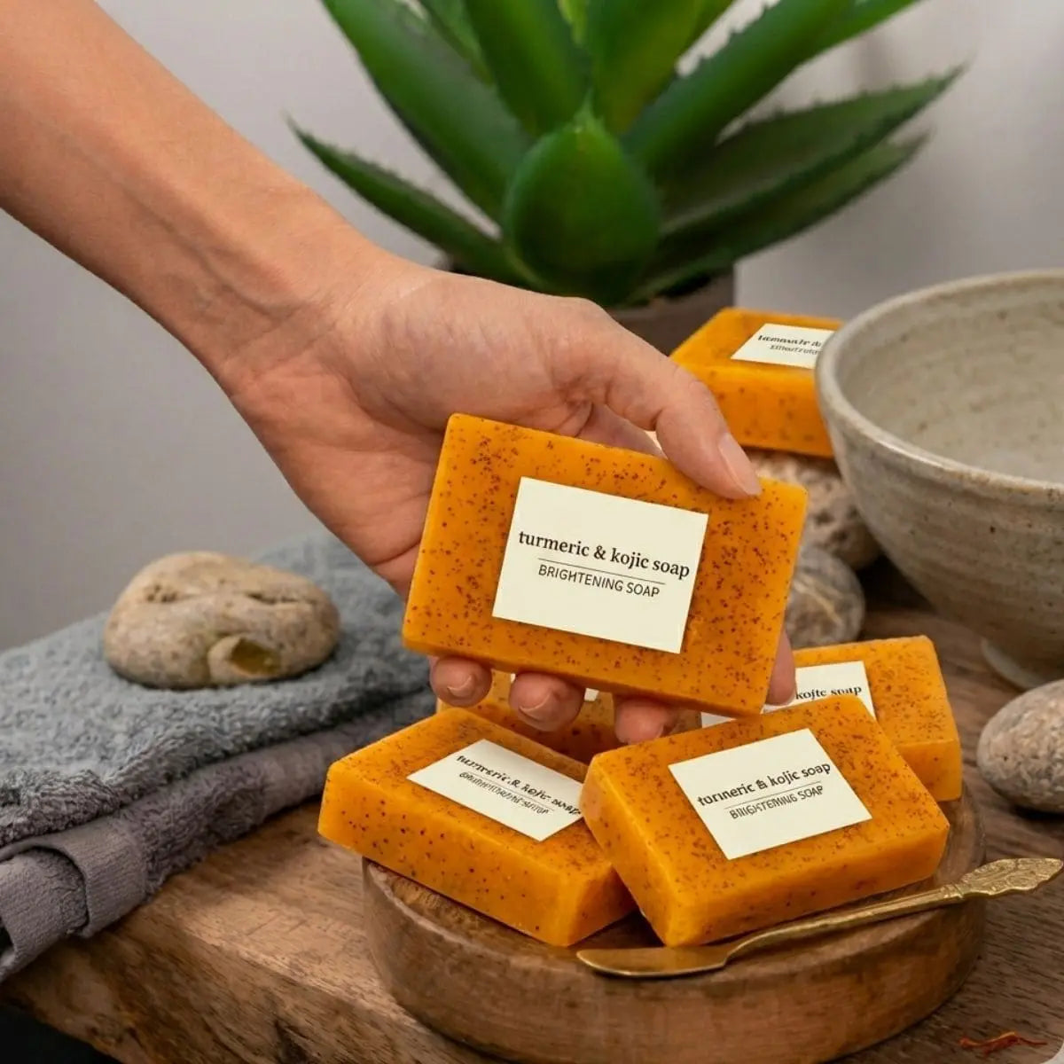 Le savon éclaircissant au curcuma et à l'acide kojique a été développé pour aider à nettoyer la peau en profondeur tout en aidant à réduire les taches brunes et l'apparence d'un teint inégal. Sa formule combine des ingrédients connus pour leurs propriétés éclaircissantes et revitalisantes, laissant la peau plus lisse, hydratée et éclatante après une utilisation continue.